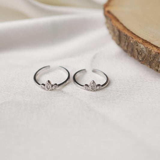 Adjustable Silver Petal Toe Rings