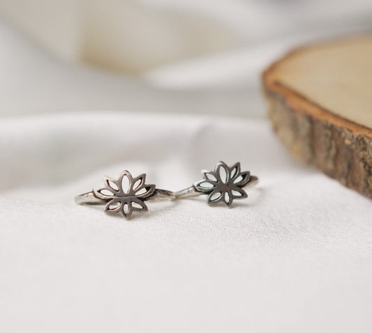 Adjustable Oxidized Silver Lotus Toe Rings