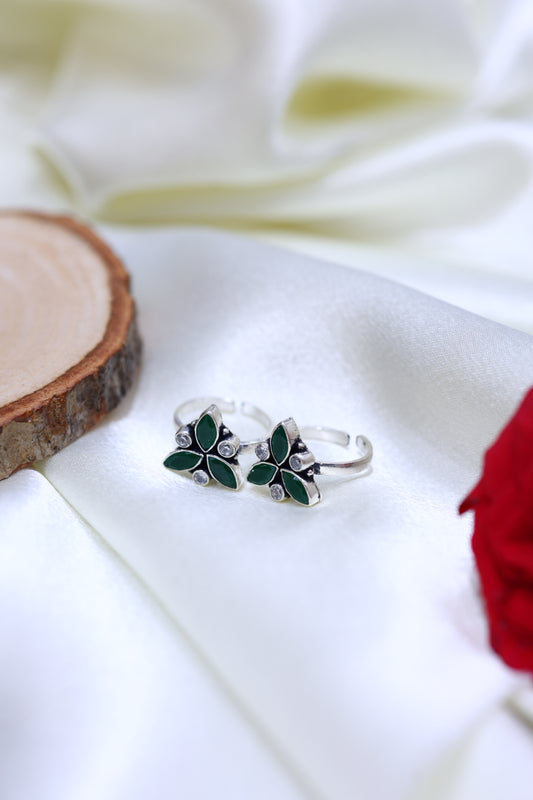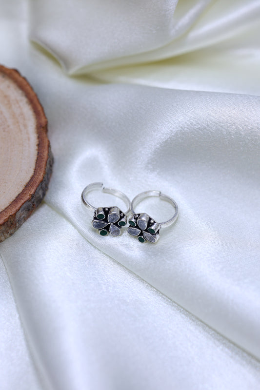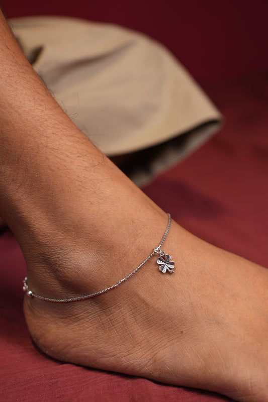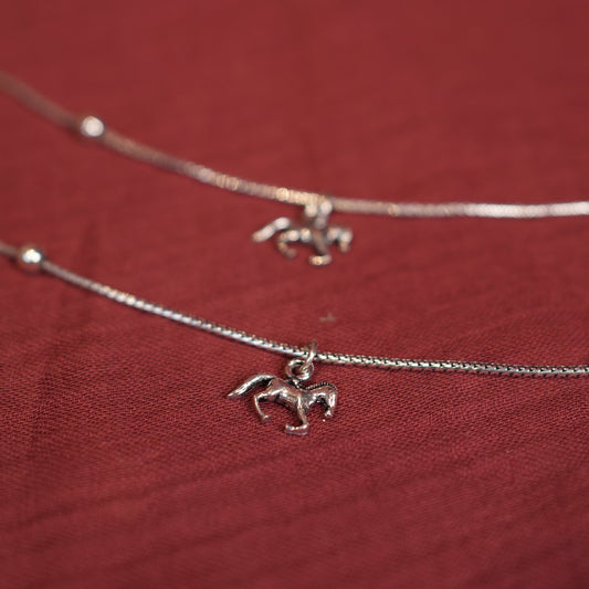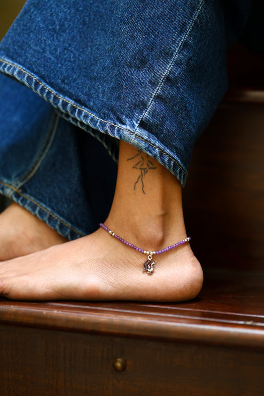 Antique Oxidised Silver Anklet with Dual-Tone Temple Design