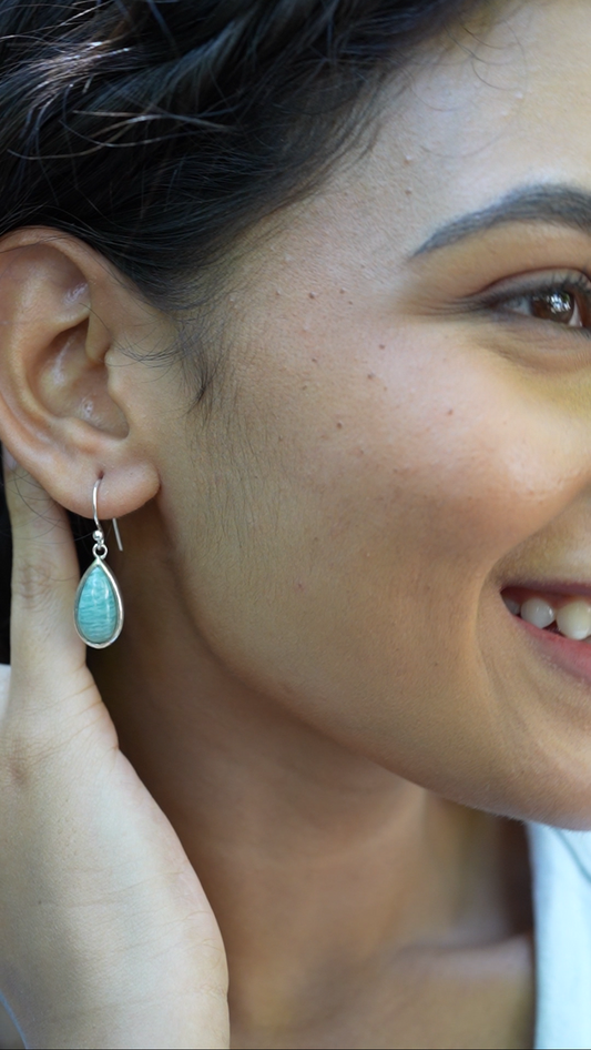 Amozonite Teardrop Silver Earring