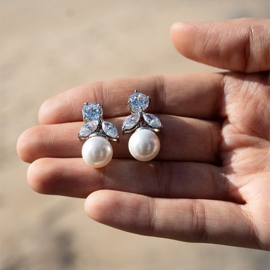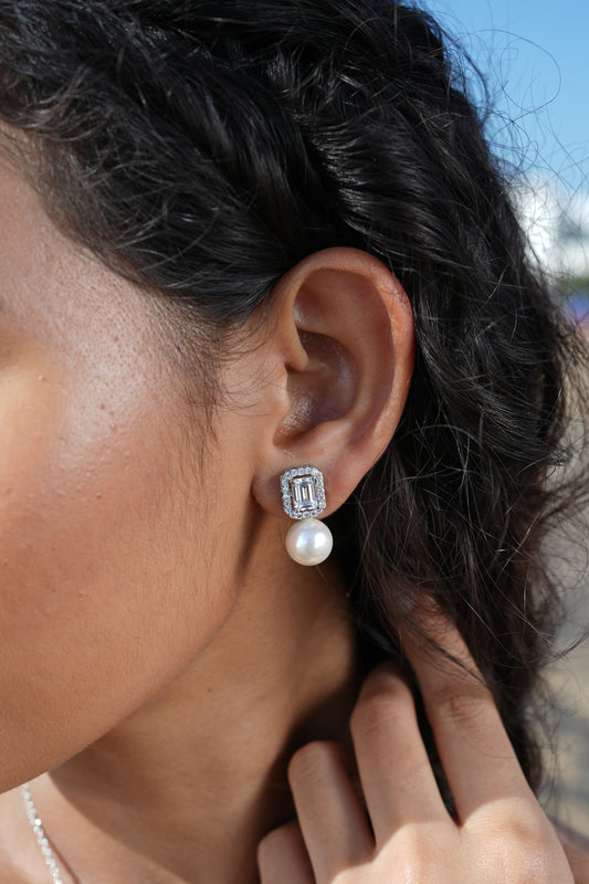 Sterling Silver Pearl Drop Earrings with Zircon Stones