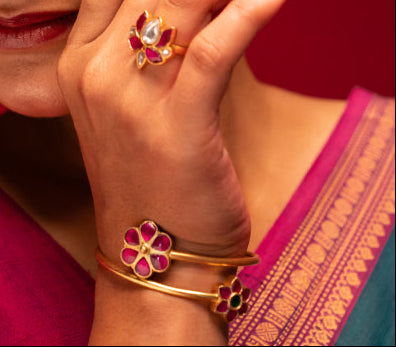 Floral Gemstone Statement Ring – Gold Plated Designer Jewellery