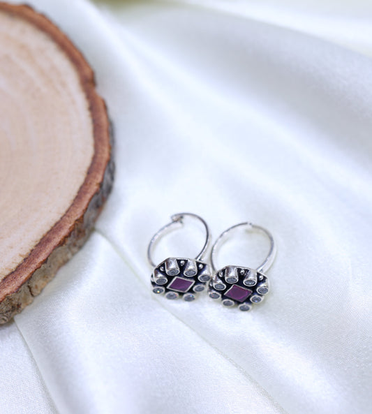 Handcrafted Silver Temple Earrings with Ruby Stone