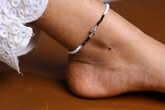 Black Bead Silver Anklet