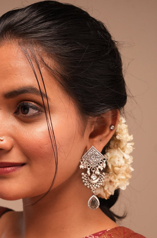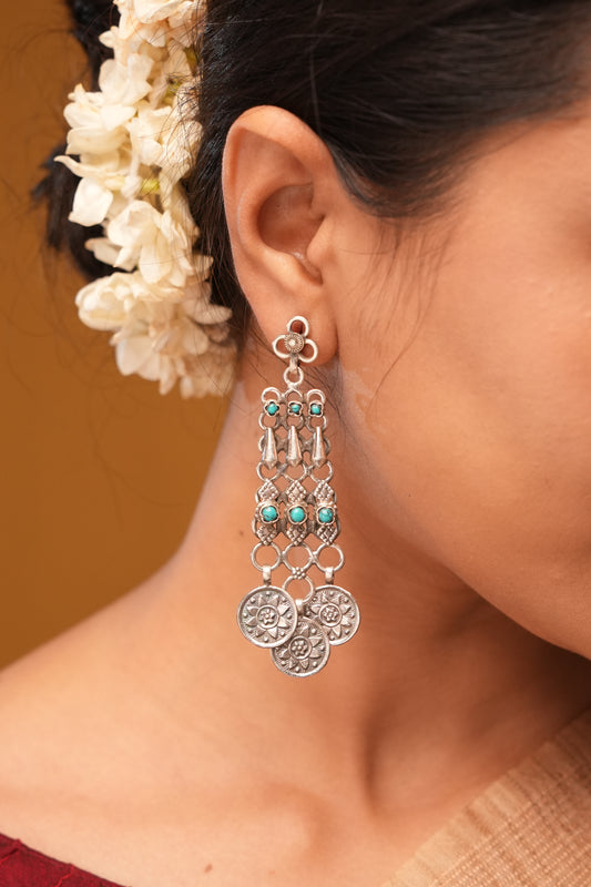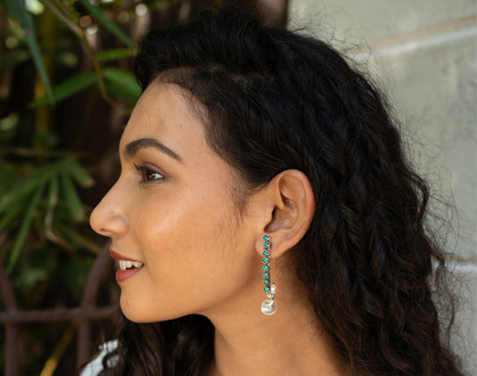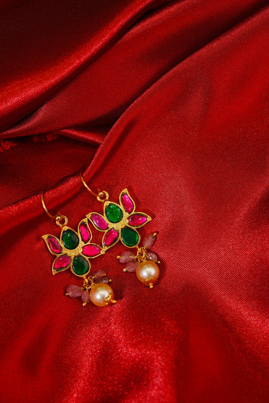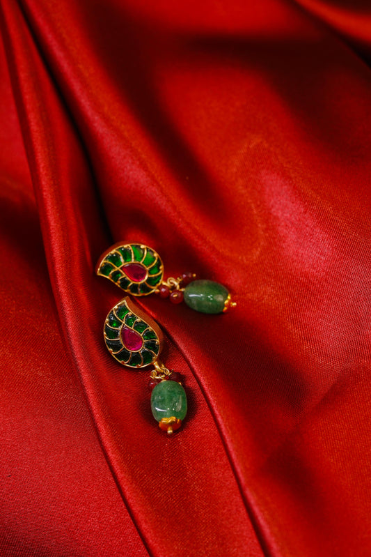 Peacock-Inspired Kundan Earrings with Green Bead Drops