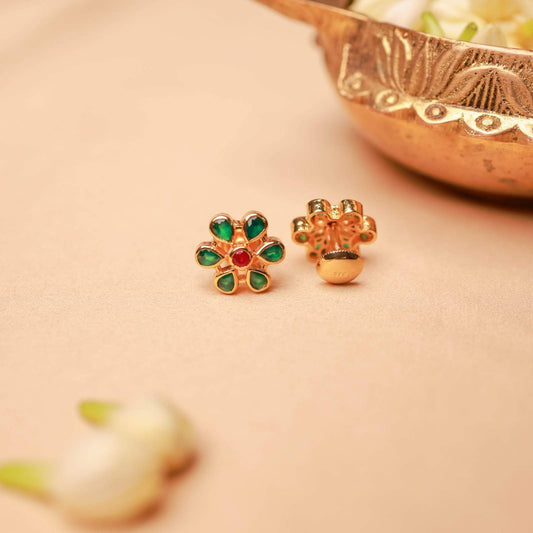 Emerald Blossom Silver Stud Earrings