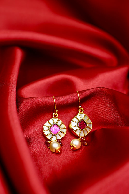 Kundan Drop Earrings with Pearl & Red Gemstone