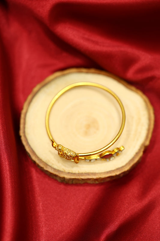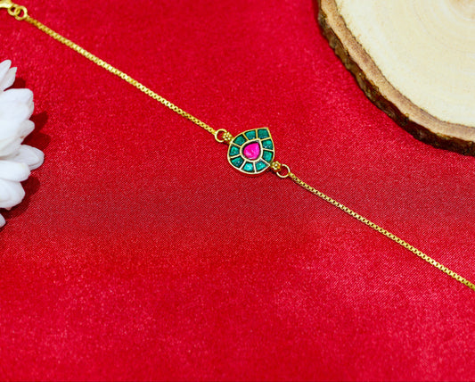 Teardrop Motif Gold Bracelet with Pink & Green Stones