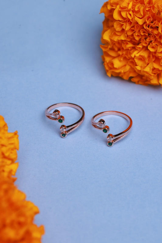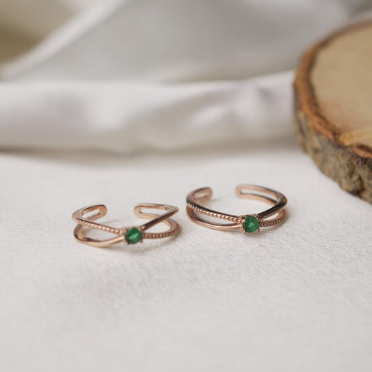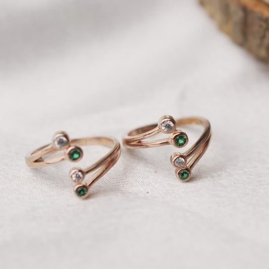Rose gold Adjustable Toe Rings with Green Colour Gemstone