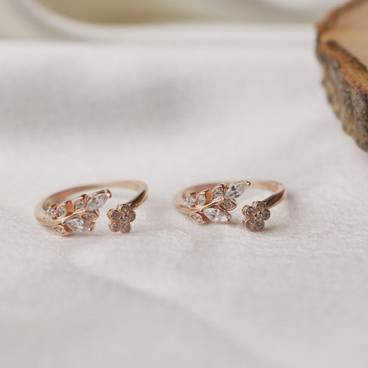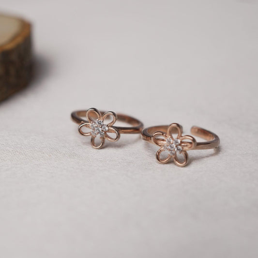 Rose Gold-Plated Flower Toe Rings with Pink Stones