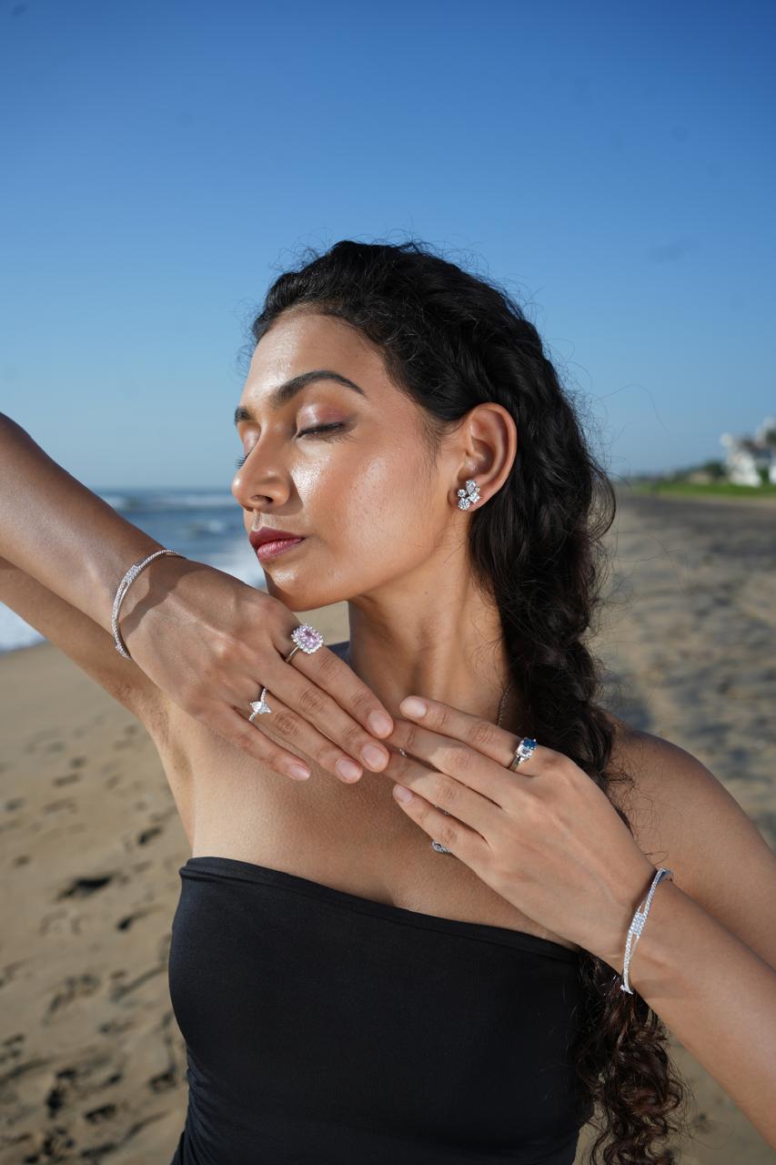 Bring radiance and sophistication to your look with our Floral Design Silver Earring With Zircon Stones. Inspired by delicate blossoms, these earrings feature a cluster of high-quality cubic zirconia stones each cut in varying shapes for maximum brilliance. Set in premium 92.5 sterling silver, the design perfectly balances minimalism and sparkle, making it ideal for both daily wear and celebratory moments.